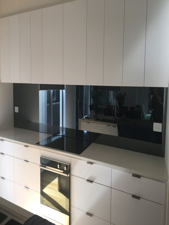 Glass Mirror Splashbacks. We specialise in supplying and installing decorative mirror glass panels’ . Should you require Mirrored splashbacks, we have a range of Silver; darkened silver and distorted antique mirrors that may fit your kitchen design. Whether it’s a kitchen or bathroom , we only use leading brands. and should you have a gas cooktop there may need to be a fire proof board installed behind your glass.